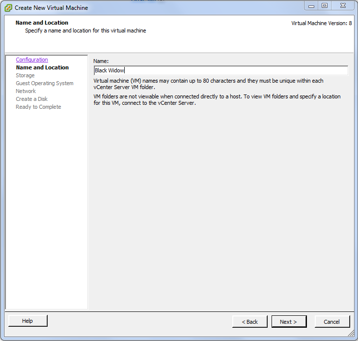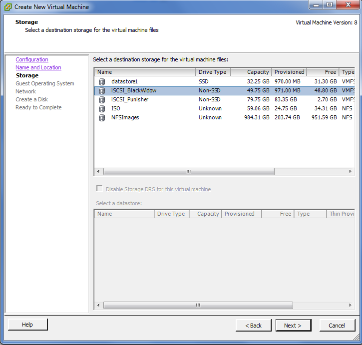 In the datastore, I renamed it to match the Punisher convention. Now we can create a new machine, and use the iSCSI target we just created.