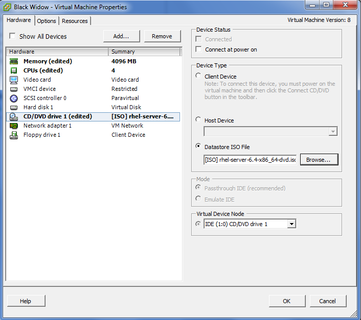 - Create a new machine on our Deadpool hypervisor, and boot using the RHEL 6.4 DVD