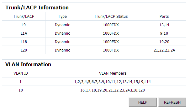 You can only see the top 10 ports above, but I also created a couple LACP groups below. Once you create the LAG groups, and assign the matching key, you can goto the LACP Status and check that they LAG groups are up (and you will also see their key ID assigned from the switch). Interestingly, the switch does not tell you the “Main” port of the LAG group here (the main port is the port that represents the LAG). To determine that, you have to click on the switch status link, in System ~> Information, as below: