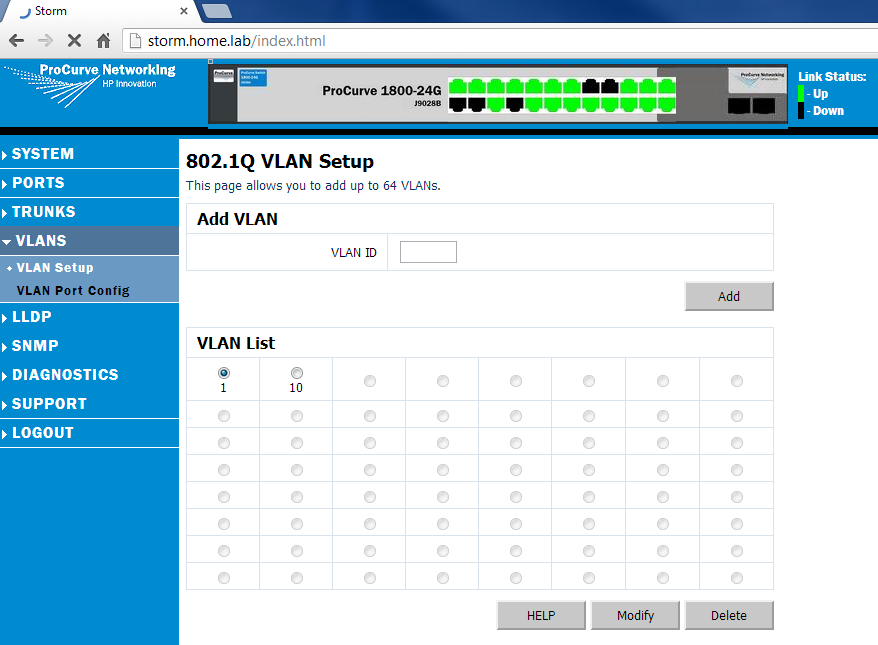 Next we will assign individual ports to the VLANs by selecting the VLAN, and then hitting the Modify button: